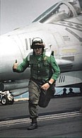 assistito durante il volo...nonchè con il pilota che... "molto scherzosamente"... affermò che sarebbe stato il suo primo appontaggio!... ma che